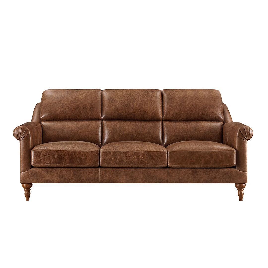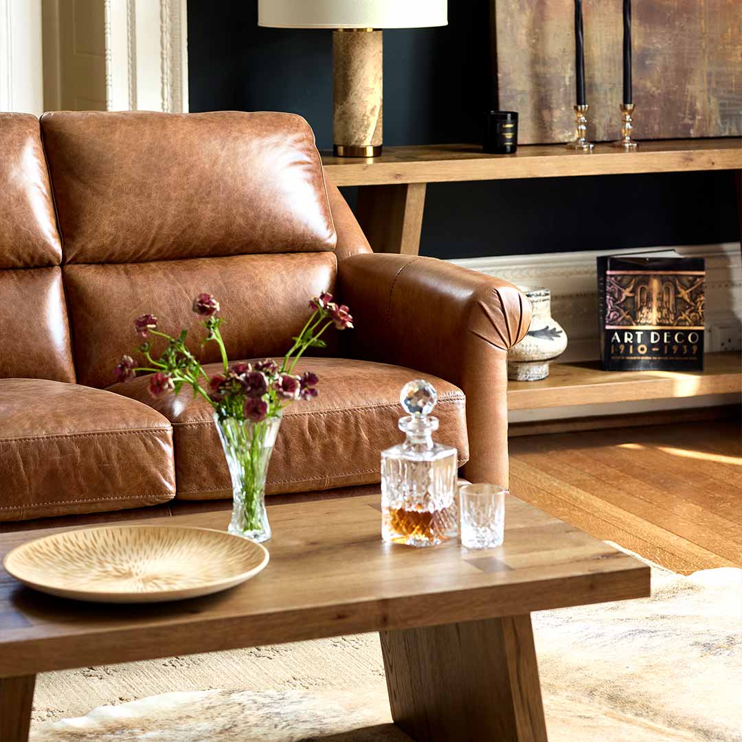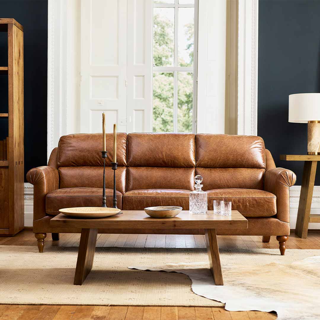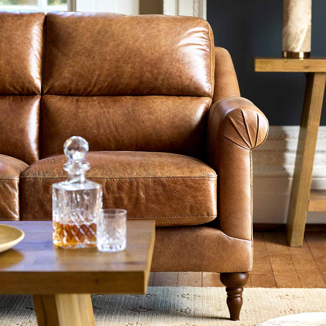 As shown, the Hereford is available to order online, upholstered in rich Oak Cask 1754 leather, paired with walnut feet and antique brass studs, creating a warm, heritage-inspired finish that develops character over time. For those seeking a more personalised finish, the Hereford sofa is available in a full range of alternative leathers and fabrics, with an extensive choice of colours available to view and order in store.