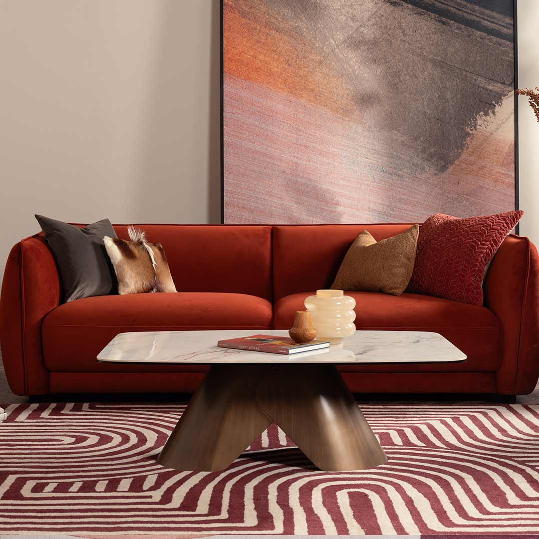 The bold metal base, finished in a brushed bronze tone, delivers dramatic contrast beneath the light tabletop. Sculptural and beautifully contoured, the base adds depth and warmth while ensuring excellent stability. This brushed bronze finish ties seamlessly with other pieces in the Soho range, allowing for a coordinated and cohesive living room look.